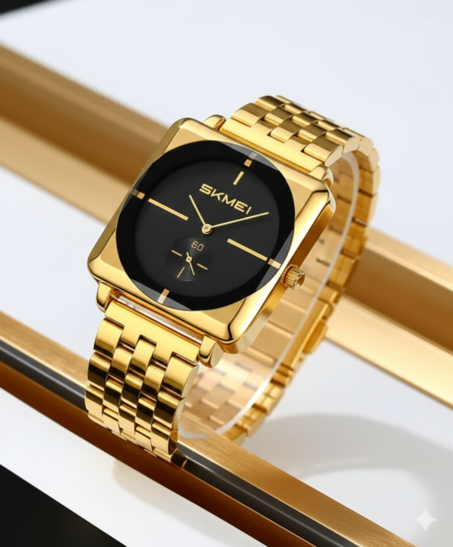 Montre homme de luxe SKMEI 2413 - bracelet en acier inoxydable, affichage carré, mouvement à quartz, design pratique et élégant, affichage par aiguilles.
