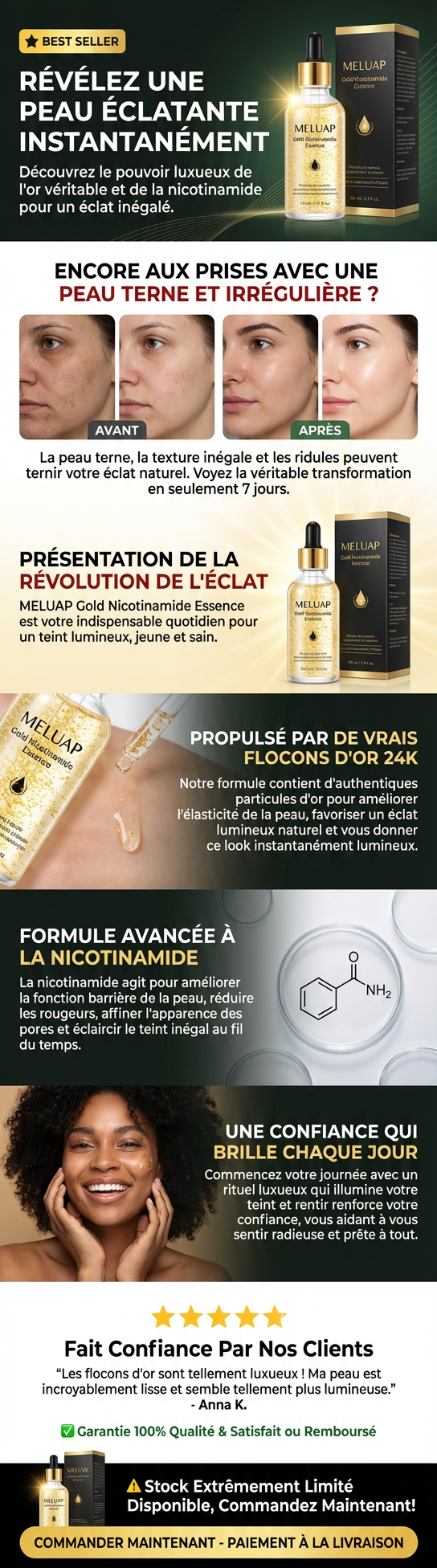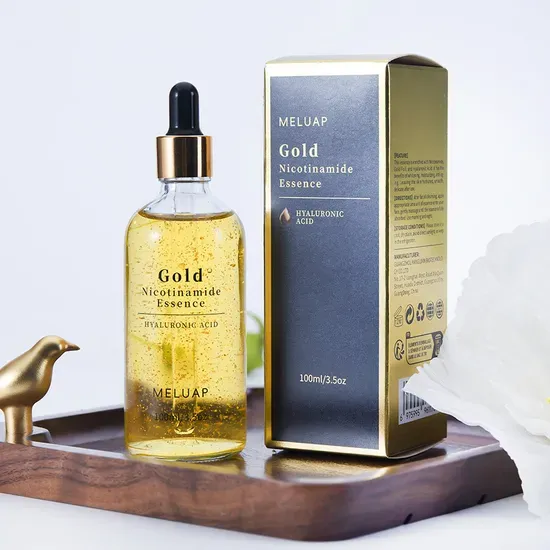 Sérum visage anti-âge 100 ml à l'acide hyaluronique, à l'or 24 carats et à la nicotinamide : sérum liftant au collagène, soin éclaircissant et anti-âge.